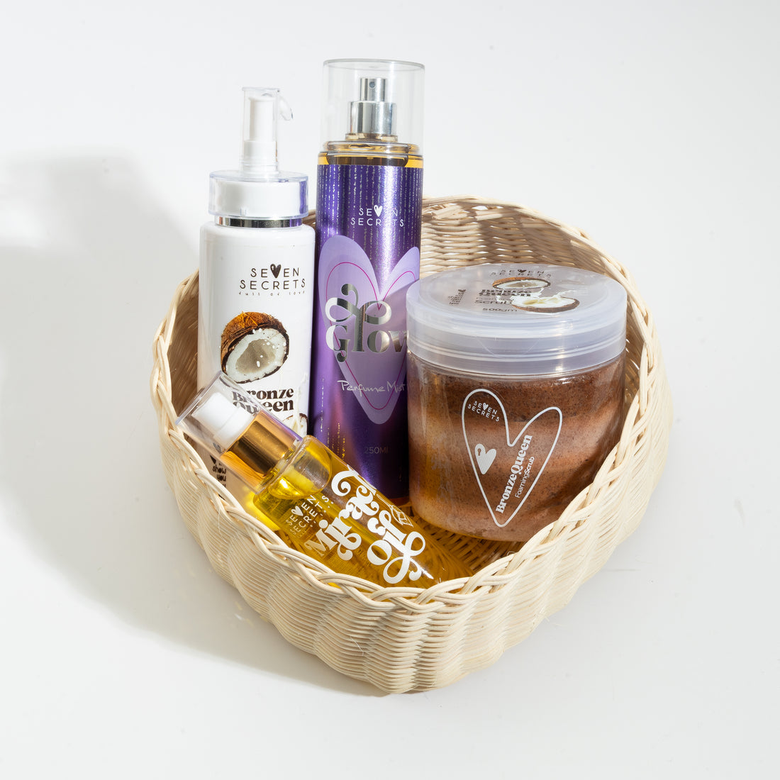 The Set Contains:Body Cream 250mL + Body Wash 500mL + Sponge + Heart Bamboo Basket...