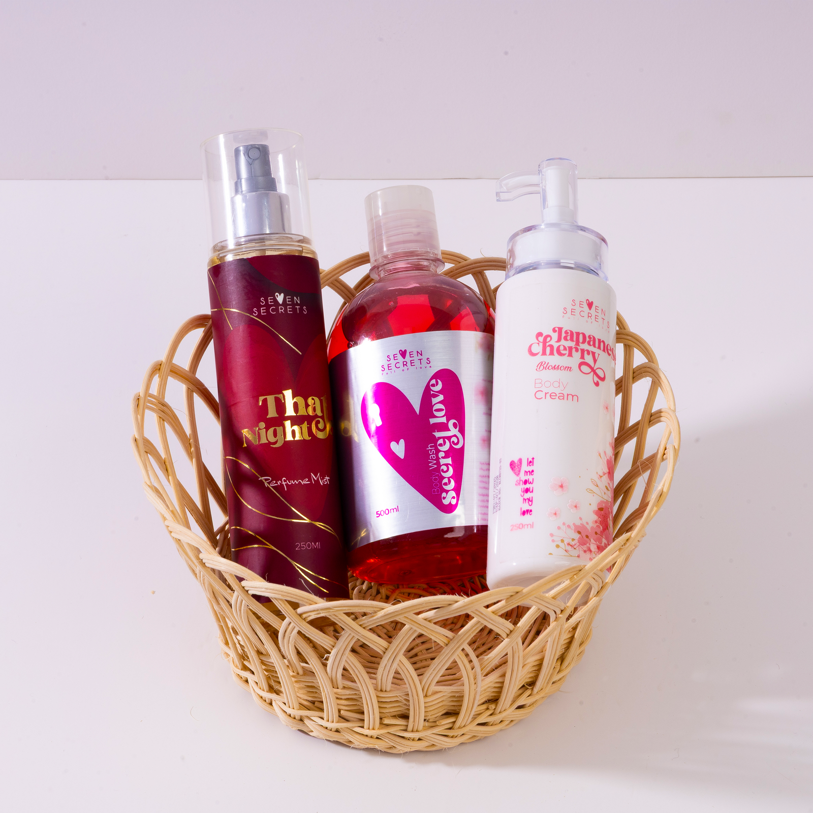Perfume Mist 250mL + Body Cream 250mL + Body Wash 500mL + Bamboo basket
