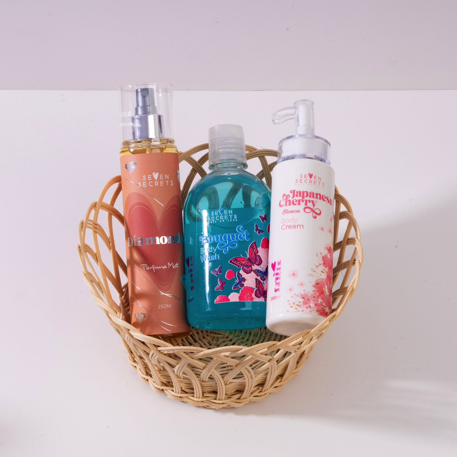 Perfume Mist 250mL + Body Cream 250mL + Body Wash 500mL + Bamboo basket